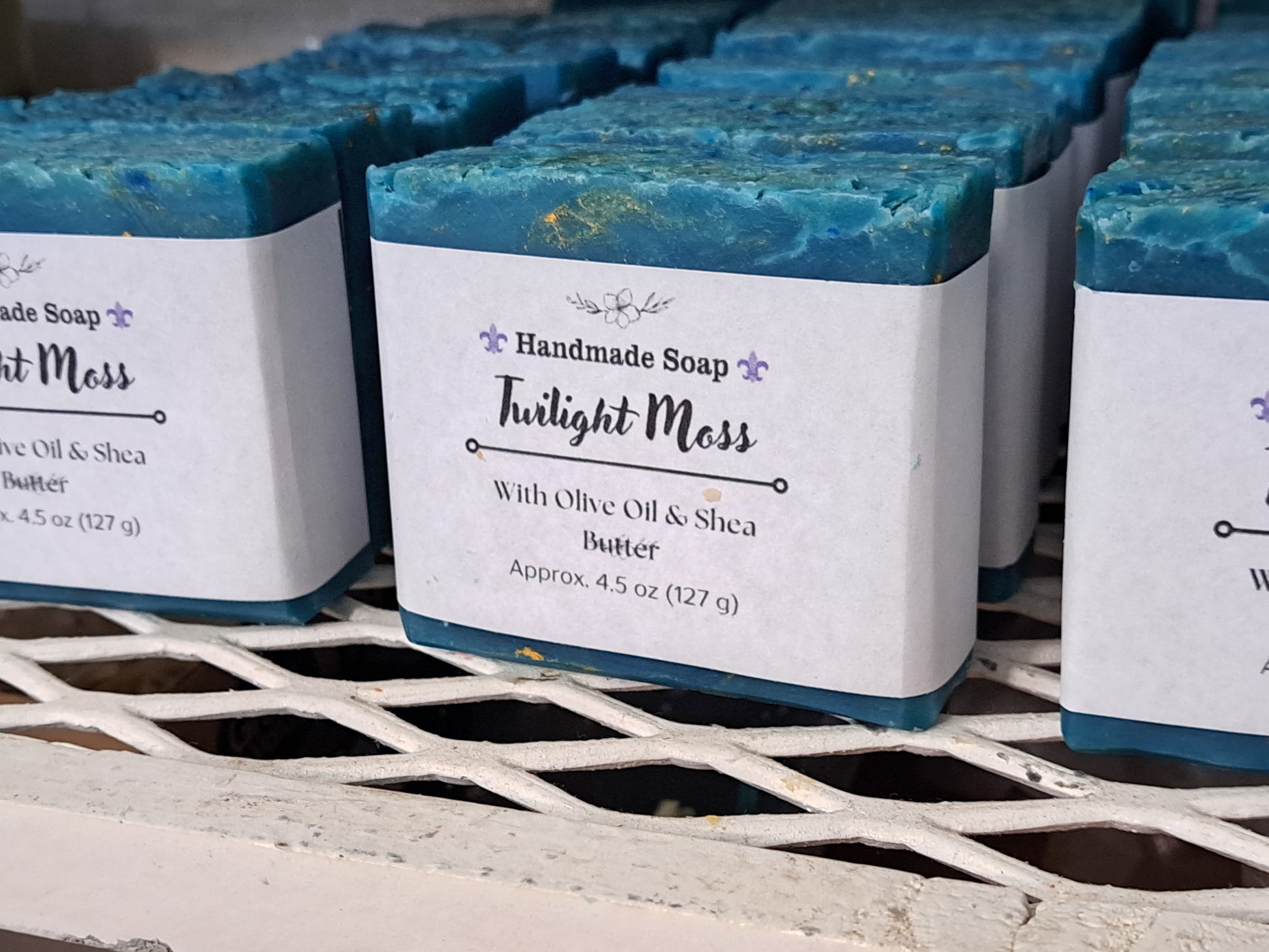 Mysterious and alluring, Twilight Moss is a handcrafted soap that brings together earthy teakwood with subtle spice and depth. Naturally colored with mica and mineral pigments, this bar carries the look and feel of a misty forest at dusk. Made in small batches with olive oil, coconut oil, and shea butter, it produces a rich, creamy lather while offering a warm, grounding aroma. Each bar is artisan-crafted, making Twilight Moss a bold and unique addition to your bath or shower.